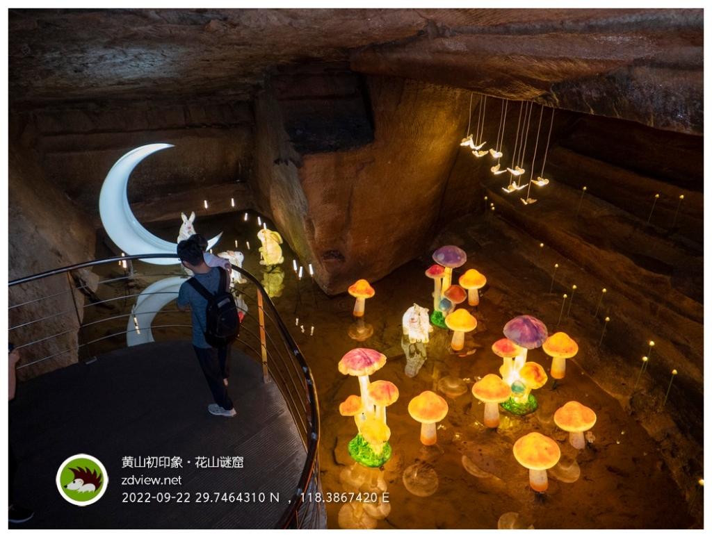 第七站,花山谜窟。这是我自己额外给自己加的景点,团里安排半天休息,我没有浪费,就一个人去了这里。去的时候可以网约车,不到三十块就可以了,但是回来有点麻烦,很难约到车,好在,谜窟大门口的花山超市门前是201路公交的始发站,每隔一个半小时一班,可以乘坐,间隔时间太长,要计划好时间。没去之前看过央视的一个纪录片,觉得花山谜窟是个天然巨大的人工洞穴,但是去了才发现,依旧是商业化了。洞窟里被安装了无数的激光、荧光灯、幻灯,五颜六色,很是魔幻。临江谜道倒是值得一走,我走的时候,可能是中午的原因,没有游客,就我一个人走在林间小道,路两边的音响还播放有点鬼气森森的背景音乐,配着低沉的解说,不由得寒毛炸起,一只小鸟都能让我一惊一乍。真想每天能坐在下面这个地方,坐观云起,这跟坐在黎阳in巷的街头是截然不同的氛围,但却是相同的感觉。